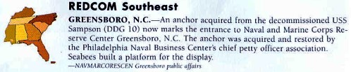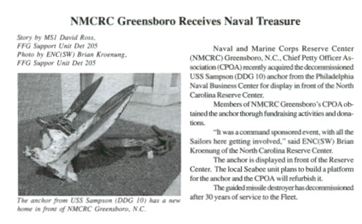 of USS Sampson's Anchor at Naval and Marine Corps Reserve Center Greensboro,